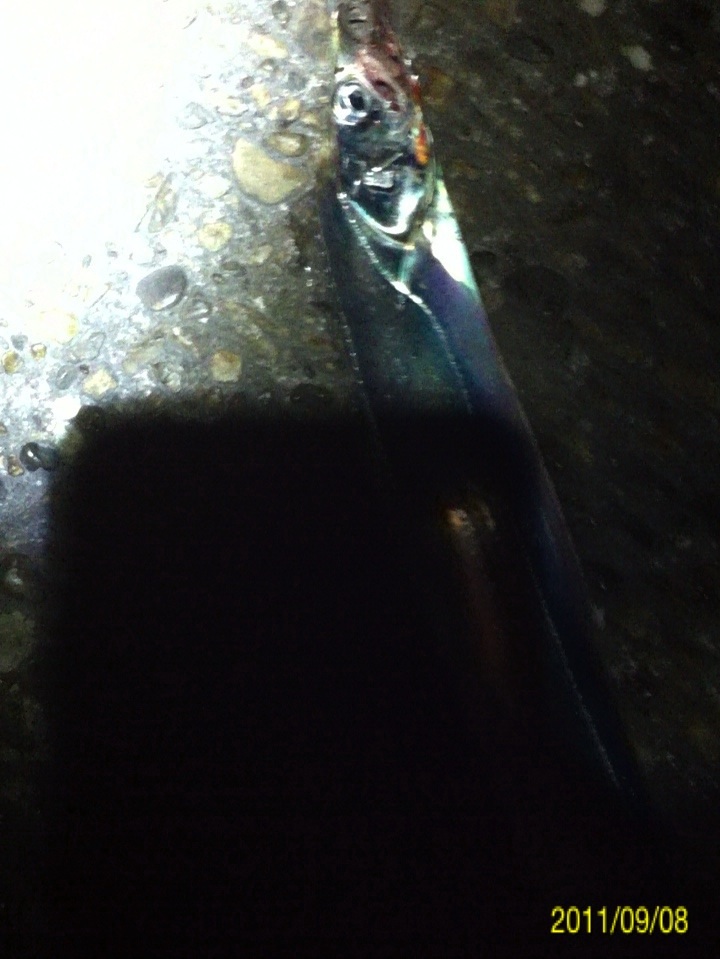 慎重に巻き上げて浮き上がった魚体をライトで照らして見ると、タチウオでした。しかも小さい・・・。