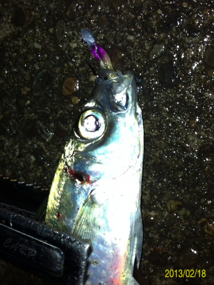 2/13 22:00~25:30 晴:気温3度~0度、風1m 中潮(下げ始め~干潮手前) 「紀北アジングを盛り上げる会」メンバーの役割として、休日前の夜は可能な限り市内の波止に立ちアジの状況を調査する必要がある・・・・ 今回のネタもアジングです。 アジングに興味のない方は、こちらから・・・・その他の釣りサイトに飛べますので、ボタンをご活用ください^_^; ↓ ↓ ↓ ↓ ↓ 今回は先日初使用で好感触だったワーム マゴバチパープルヘッドだけを使ってアジングをやってみたいと思います。 画像左側がパープルヘッドです。 ワームには色んな種類がありますよね。味付き、ニオイ付き、夜光、ケイムラなど・・・ 今までは釣れない時、渋い時、確実に一匹目を仕留めたい時は必ずと言っていいほど味・ニオイ付きを使っていました。 もちろんこれからも頼ると思いますが、今回は味・ニオイなしのマゴバチのみでトライします。 先ずは一匹目・・・ メバルちゃんGET 20センチに満たないので、離れた場所にリリース。 このタイミングでツイ友さんが登場。 一緒にアジングをスタート。 ちなみにツイ友さんもマゴバチを使用してました。 ここからアジの乱舞が始まりました。 着水からのフォール途中でヒット!! 着水してロッドを立ててのただ巻きでヒット!! ただ巻き+チョンチョンの合わせ技でヒット!! もう何をやっても釣れる状況です^o^ ツイ友さんもヒットの連発で二人終始楽しく、忙しく、キャッキャ言いながら釣りを楽しみました*\(^o^)/* その後、KAMメンバーのじゅにあさんも合流し・・・・もう充分にアジを確保できてるので、釣ってはリリースするというアジングでは珍しい釣り方に変更 久しぶりの2桁釣果とツイ友さんとのコミュニケーションで最高に楽しい楽しい時間を過ごすことができました^_^ マゴバチはアジを10匹ほど釣ったらボロボロになりますが、すこぶる反応が良かったです。それとワームの生地が非常に柔らかいので、フックからズレやすいのでマメにチェックしたほうがいいと思います。 「にほんブログ村」海釣り部門人気ランキングに参加中です。面白い!参考になった!他の方の釣りブログも見てみたい!と思われた方は下のアイコンをクリックして下さい(^-^)/ にほんブログ村  |