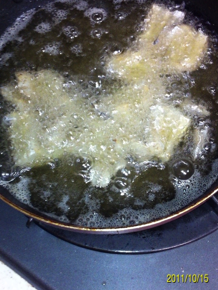 タチウオの唐揚げ クラッシュピーナッツ和え