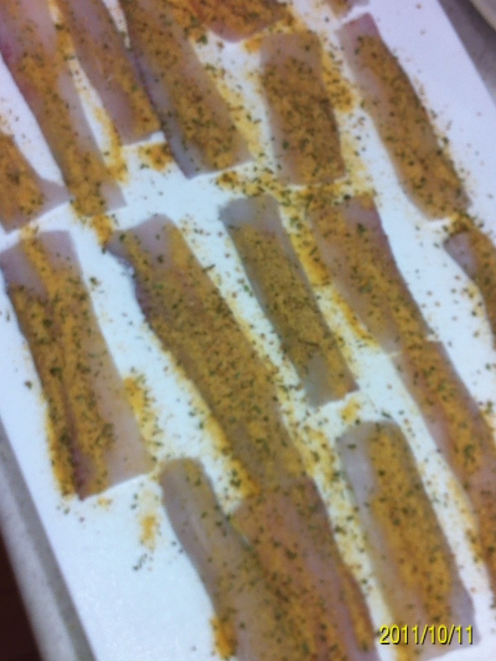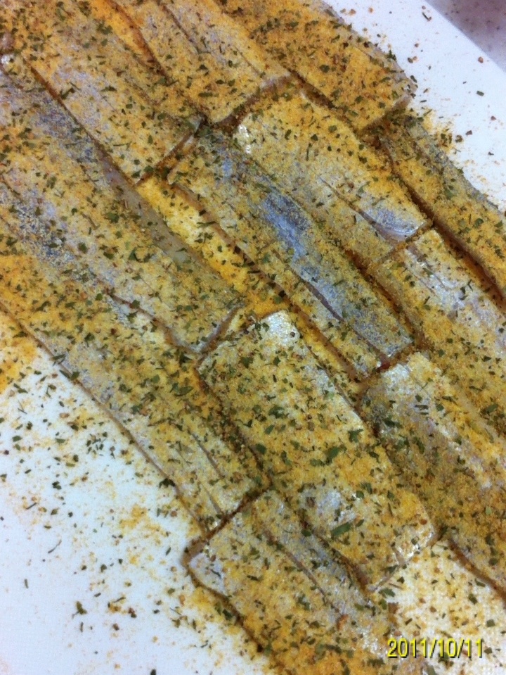 次に塩、コショウ、パセリ、セージ、ガーリックパウダーを適量まぶします。