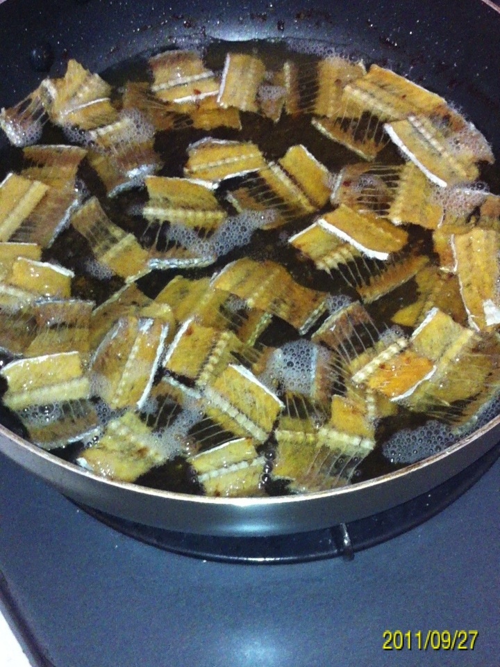 9/27に釣ったタチウオの骨をせんべいにしていきます。