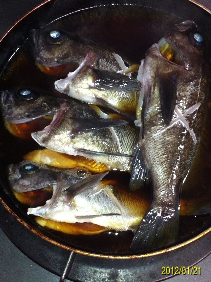 今回は煮付けを作ります。 いつもはすき焼きのタレとショウガだけで作っていますが、今回は本来の煮付けに近い作り方でやってみます。 準備する物は ・メバル ・水200cc ・料理酒100cc ・醤油大さじ3 ・ミリン大さじ3 ・砂糖小さじ1.5 ・チューブの生ショウガ 5センチ 調味料はあらかじめ混ぜ合わせておきます。 メバルを捌いていきます。 ウロコを取り、ワタ、エラを外して水で綺麗に流します。 胴の部分に包丁で十字形に切れ目を入れます。 調味料を沸騰させます。 メバルを入れます。 キッチンペーパーで落し蓋をして、しっかり火を通します。 火が通ったらキッチンペーパーを外して冷まして味を染み込ませます。 食べる前に再度加熱して、熱いうちに食べましょう。 メバルは煮付けが一番美味い!!かも? にほんブログ村 PR |