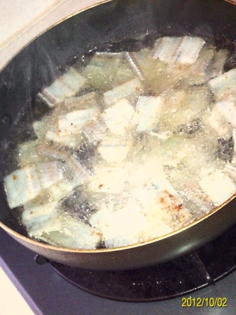 ひろさんから頂いたシーバスでの料理。いよいよ最終編に突入です。 今回はいっきにまとめて3品やります。 1品目 【鱸のムニエル】 鱸の切身の両面に塩コショウをかけます。 それに小麦粉をつけておきます。 フライパンにオリーブオイル、ニンニクスライス、ローズマリーを入れて良い香りが出るまで熱します。 フライパンに鱸の切身を入れて両面焼きます。 次はタルタルソースです。マヨネーズ、ゆで卵、玉ねぎ、パセリ、塩コショウ、牛乳(ほんの少し)を混ぜて作りました。 鱸のムニエルにタルタルソースをたっぷりとかけて完成です。 2品目 【鱸のフライ】 適当なサイズに切って塩コショウをふって・・・ 小麦粉をつけて・・・ 溶き卵をくぐれせてから、パン粉をつけます。 フライパンで揚げていきます。 キツネ色になってきたらオッケーです。 鱸のフライの完成 3品目 【まかない料理風煮付け】 鱸を捌くとき、骨のまわりにいつもより多めに身を付けて捌いておきます。 市販のすき焼きのタレを水で3対1の濃度に薄めてチューブにショウガを一絞り。 落し蓋をしてゆっくり煮付けて完成です。 刻みネギをトッピングすれば、さらに美味しくなります。 「にほんブログ村」海釣り部門人気ランキングに参加中です。面白い!参考になった!他の方の釣りブログも見てみたい!と思われた方は下のアイコンをクリックして下さい(^-^)/ にほんブログ村 PR |