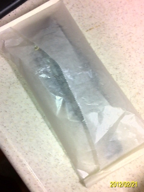 今回は、根魚の半夜干しを作ってみたいと思います。 実は先日、試験的に作ったメバルの塩釜焼きが予想以上に美味しかったので、もっと手軽に同じくらいの味が出せればと思い、行き着いたのが今回の「半夜干し」です。 まずは、ウロコを落としてキレイに洗います。 次に包丁を背中から入れて開きます。 頭の部分は料理バサミを使うと、簡単に開くコトができます。 次に背ビレを切ります。 器に塩と昆布だしを入れて、水で溶かします。 開いた魚を入れます。 約2時間漬け込んだら、器から取り出して水分をしっかりと拭き取ります。 ラップをせずに冷蔵庫で約半日乾燥させます。 出来上がりました。 オーブントースターや魚焼き器などで、表面に焦げ目がつく程度まで焼いて完成です。 味のほうは・・・・ 最高でした(^_^) 塩釜焼きに近い味が出せました!! 超簡単に作れるので、僕の定番レシピに決定です(^_^) 「にほんブログ村」海釣り部門人気ランキングに参加中です。面白い!参考になった!他の方の釣りブログも見てみたい!と思われた方は下のアイコンをクリックして下さい(^-^)/ にほんブログ村 |