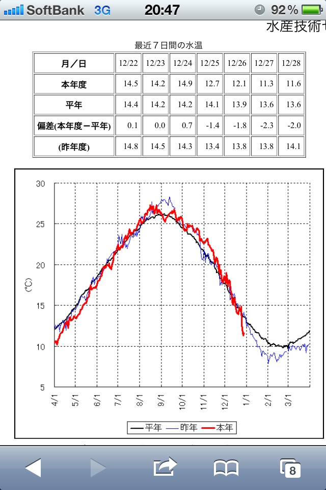 今年最後の釣りに行ってきました。 狙いはライトゲームでガシラ、メバル、アジですが、メインターゲットは前回の釣行の中で後半に釣果のあった、デカアジを仕留めることです。 ここ最近和歌山市の水軒から加太の大波止にかけて釣果情報が上がっているヒラアジの引きを満喫してみたいと思います。 ちなみにヒラアジの相場はというと・・・ 結構するんや~。 ポイントは情報にたよって、和歌山港周辺です。 気候のほうは 気温は4度ですが、風はほとんどありません。 潮は中潮の下げパターン 海水温は いいのか悪いのか・・・。 ポイントに到着して早速表層にいるアジを探します。 探し方は結構簡単・・・海面にヘッドランプをあてて赤い小さな反射光が有ればアジの可能性が高いです。 アジの眼の水晶体はライトに当たると赤く反射します。 やみくもにワームを投げるより、アジを探して、居るポイントに投げる方が釣果が上がると思います。 しかし、30分ほど探しましたが赤い小さな光を見つけることができませんでした。 はは~ん!!今夜は底やな!! (何の根拠も無い推測です。) じゃあ、前回釣果のあったポイントで底をワームで引いてみよう。 僕のリグは90%がキャロです。 釣れるから使ってるのか、こればかり使ってるのでヒット率が高いのか? 僕はわかりませんが、相性のよいリグです。 海に来てから、かれこれ4、50分たって、やっとワームを投入!! 完全に底を取ってから、大きくしゃくりあげ、ワームをフォールさせま・・・・グインッ!!オッなんか喰った!! この引き方は・・・前回の釣行でデカアジの引き方を知った僕は、すぐにわかりました。 クサフグ・・・でした_| ̄|○ 写真に撮るのも面倒なので画像はありません。 その後も・・・5~15センチ程度のクサフグの猛攻が続きます。 ワームの尻尾が噛み切られ、使いものになりません・・・イライラ・・・。 気分転換にタバコを一服。 ボーッと海を眺めていると・・・ 赤い小さな光!! アジ!! アジおるやん!! 表層におるやん!! すかさずワームを投入!! カウントダウンというか、着水してスグに喰いついてきました。 ええアジや~!! まだ赤い光が見えてるんで、再度ワーム投入!! 今度はカウントダウン5のスローリトリーブの途中でアタックしてきました!! これもいいアジやん!! 家族4人なんで、デカアジ4匹釣って帰るぞ~!! 同じパターンで・・・・ あと一匹で最低ノルマ達成。 先程まではママワームのグローカラーの2インチを使っていたのですが、確実に仕留めたいのでガルプサンドワームにチェンジ!! 予想的中!! きました~!! その後はピタリとアタリも無くなりストップフィッシング。 最終釣果は サイズがわかりにくいので、もうワンショット。 最大ジャスト30センチでした。 前回よりも少し小さいですが、年内最後の釣行でターゲットを仕留めることができて大満足の結果でした。 次回のブログ更新は年明けになりそうです。 内容は「アジ料理いろいろ」かな? 来年も懲りずに釣りに行きまくる予定です。 釣果があろうと、なかろうと今まで通り100%アップしていきますので、今後ともお付き合いよろしくお願いいたします。 皆様、良いお年をお迎え下さい。 にほんブログ村 |