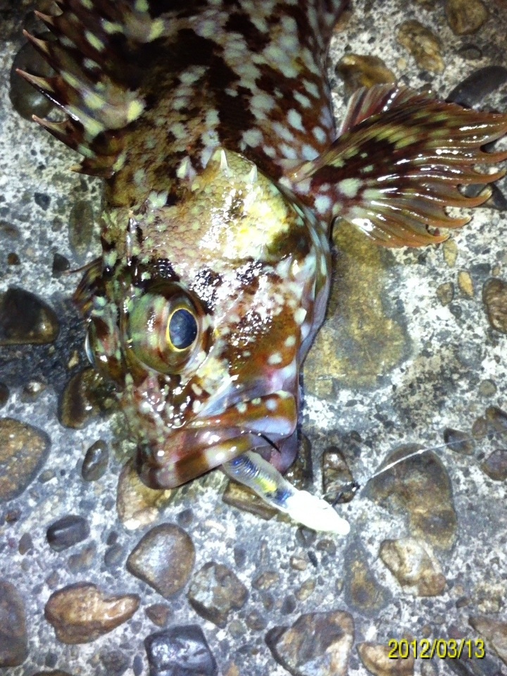 メバルの釣れる新しいポイントは無いものか?と思い、今まで釣りをした事の無いポイントを開拓しに行ってきました。 普段行ってるマイポイントは釣り人も少なく魚種も豊富で、魚影も濃いのですが、やはり同じポイントばかりでは面白味もなくなるし、魚影も薄くなってしまう・・・ 僕のポイント探しの条件は ①釣り人が少ない ②家から近い(30分以内) ③魚種が豊富で、魚影も濃い ④安全 ⑤メバル、アジが釣れる この条件を満たすポイントをまずは地図で探していると、気になる場所が数カ所出てきました。 今回は数カ所の内の一カ所に絞って試験釣行したいと思います。 まずは環境のチェックです。 波止から海面までの高さは5m程あるので、万が一シーバスを掛けても僕の持ってるランディングネットじゃ獲れない高さです。 波止のスグ横にテトラ帯があります。 常夜灯の効いている場所はありません。 今夜のコンディションは 天気:曇り~雪 気温:2度 風:北5~2m 潮:中潮の満潮からの下げ それでは、スタートフィッシング!! 約1時間の間、風が強くて釣りにならない状態が続きました。 その後、潮が動き出したタイミングで風も緩みました。 ジグヘッドの1gに2.3インチのクリアカラーのワームに魚のアタリが!! 連チャンで・・・ ガシラばかりが・・・ ヒットする・・・ ボトムを引いているわけではありません。 キャストしてカウントダウン3秒程度でリトリーブしているので、ガシラが浮いてきているとしか考えられない・・・。 その後も・・・ ガシラの猛攻が・・・ 止まりません・・・(^_^;) そしてやっと本命のアタリが!! しかし後が続かず・・・ 微妙なサイズのガシラが多い・・・ メバルの魚影が少ないのか? 久しぶりに出会えました。 このポイントはガシラのパラダイスなの? その後もガシラばかりがヒットし・・・ バッカンが満員御礼状態です。 その後急にアタリが途絶え、雪が降ってきたのでストップフィッシングとしました。 本日の釣果画像 ガシラ14匹位?(オールリリース) メバル2匹 メバルの新ポイント開拓に来たのに、ココはガシラのパラダイスでした(^_^;) 次回リベンジいたします(^-^)/ 「にほんブログ村」海釣り部門人気ランキングに参加中です。面白い!参考になった!他の方の釣りブログも見てみたい!と思われた方は下のアイコンをクリックして下さい(^-^)/ にほんブログ村 PR |