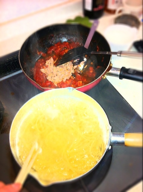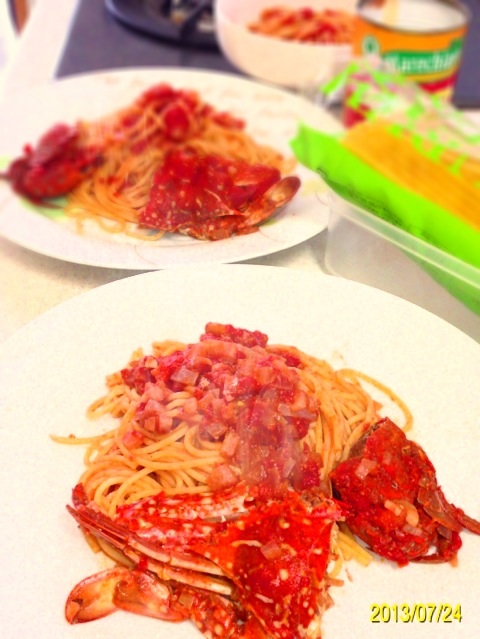 釣ったシーバスをソテーにします。 ソースは手作りのトマトソースです。 40センチの位のシーバスが捌きやすいと思います。 3枚におろして塩コショウやお好みでハーブなどをかけて15分程度放置します。 フライパンにオリーブオイル、ニンニクスライス、ローズマリーを入れて熱します。 シーバスを皮面からじっくり火を通します。 裏返して両面焼きます。 ソテーはコレで完成。 次にトマトソースを作ります。 塩分無添加のホールトマトの缶詰をフライパンに入れて・・・・ 塩コショウ、ハーブ、ブラックオリーブ、白ワインなどを入れて煮込みます。 ベーコンも入れるとさらに美味しいです。 じっくり煮込んで・・・・ ソテーにかけて完成です。 余ったトマトソースにツナ缶をぶち込んでパスタに絡めるとめちゃくちゃ旨かったですよ^_^ 「にほんブログ村」海釣り部門人気ランキングに参加中です。面白い!参考になった!他の方の釣りブログも見てみたい!と思われた方は下のアイコンをクリックして下さい(^-^)/ にほんブログ村 |