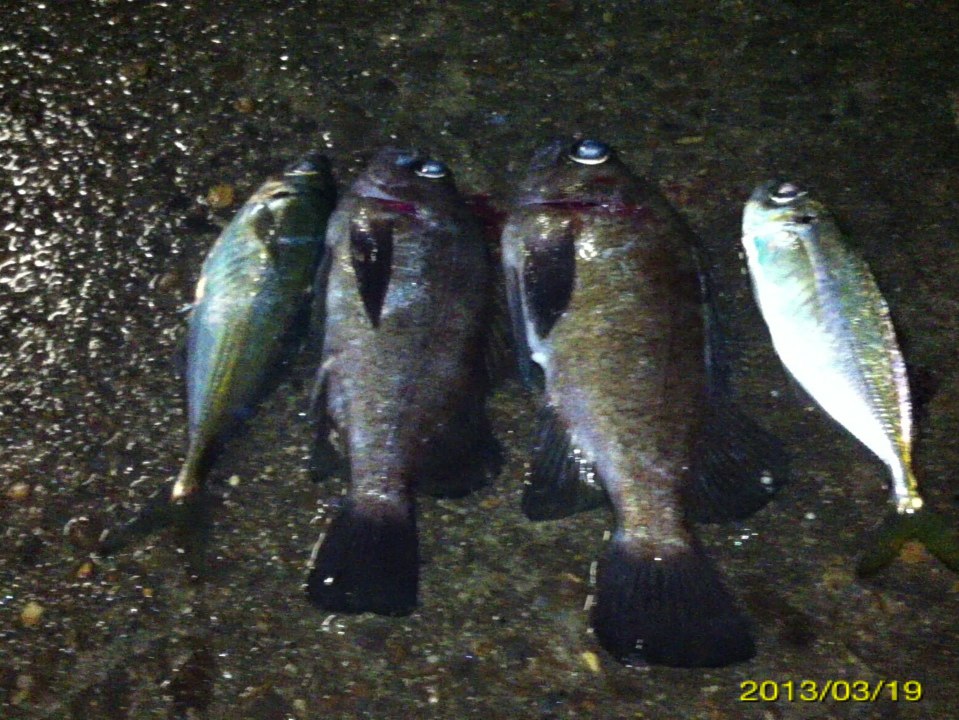 連休が終わってしまったのでブログの更新頻度がスローになってきておりますが、ちゃんと釣りには行っております。 【34】のストリームヘッドと出会ってからは活性が低い時も取りこぼすことが少なくなったように思います。 *最近のお気に入りセッティング・・・・ ストリームヘッド0.5gにリーダー無しで1lbのフロロラインに直結。 これをソリッドティップのロッドと1000番のリール(ドラグはゆるゆる設定)を使用してます。 このセッティングでついばむ(弾いてしまう)あたりも上手く吸収してフッキングしているように思います。 リトリーブ中に違和感を感じたらすかさず縦に合わせてやれば、20UPのメバルがきても呑まれることなくフッキングできます。 3/8の釣果 3/9の釣果 この日は現場で処理しました^_^; 3/12の釣果 ほとんど全てストリームヘッド0.5gを使用しての釣果です^_^ また料理のほうでは、ひろさんから80センチの鱸をいただいちゃいまして・・・・ 牛蒡と一緒に煮付けたり・・・ トマト煮込みにして食べたり・・・ 美味しくいただきました*\(^o^)/* いつもありがとうございます。 僕の釣ったアジは・・・・ ジュワッ~と油で揚げて・・・ チーズや大葉、梅肉も挟んでます・・・ 美味しいアジのフライになりました^_^ 「にほんブログ村」海釣り部門人気ランキングに参加中です。面白い!参考になった!他の方の釣りブログも見てみたい!と思われた方は下のアイコンをクリックして下さい(^-^)/ にほんブログ村 |