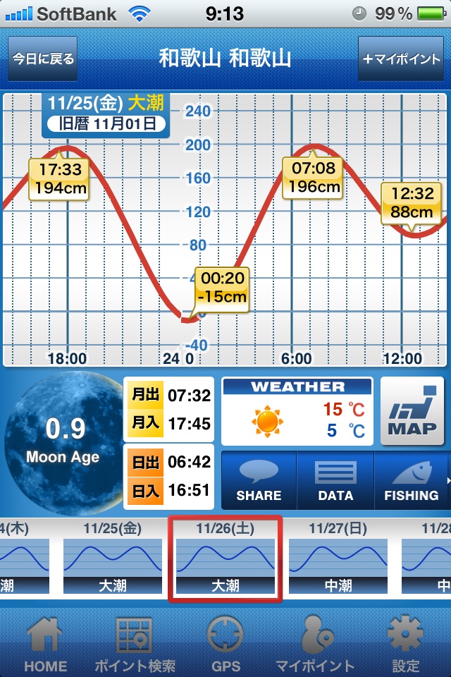フェリーはまだか~。 そう、フェリー・・・フェリーなんです。 和歌山港に到着する南海フェリー!! タチウオはこのフェリーと共にやって来るんです!!(正しくは活性が異常にUPする) フェリーが入港すると、そこら中の電気ウキがイッキに海中に消し込み、入れ喰いモードがスタートします!! ウキ釣りの方は、この時間迄は竿2本で釣りをしていたとしても、大半の人が1本に減らします・・・。 なんで?・・・・ そう、忙しすぎるのです!! 2本同時ヒットはあたりまえ、まわりのウキも消し込むしで、2本出しているとライントラブルになって余計に効率が悪くなってしまうのです。 この爆釣タイムを【青岸フェリータイム】と僕は呼んでいます。 時間は明け方の5:00前後。 フェリーが入港して来ます。 通過すると、湾内の海水が激しく波打ちます。 これを皮切りにスタート。 そして6:00前になるとフェリーが出港します。 これが終了の合図です。 青岸フェリータイムを体験したことの無い方は是非一度行ってみてください。普通の朝まずめの時合いとは、一味違います。 前回記載の青岸爆釣ポイントとの合わせ技で、さらに釣果アップできますよ!!? |