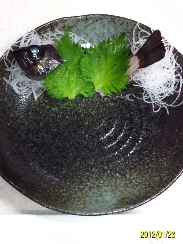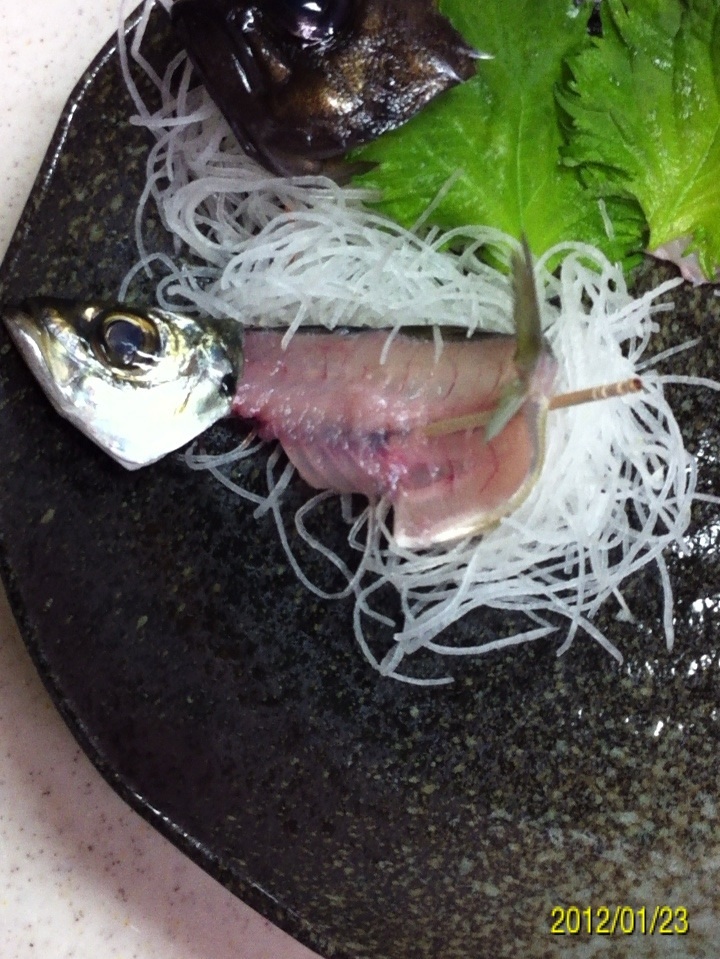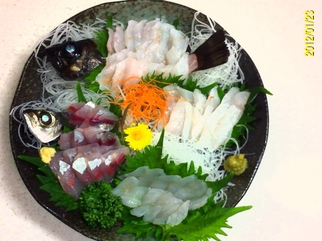 今回はメバル、ガシラ、アジ、アイナメのお造り4種盛りです。 食材を準備 ウロコを取り・・・ ワタ、エラを外してキレイに水で流します。 3枚におろします。 皮を外します。 小骨を骨抜きや、毛抜きを使って全て抜きます。僕は毛抜きを使ってます(料理用に買った物なので、鼻毛は抜いてませんのでご安心を(^_^;)) このまま握り寿司にしても美味しいかも・・・。 まずはベースの準備です。 メバルからやります。 器に刺身のツマを写真のように置きます。 メバルのおかしらを置いて大葉をひきます。 次はアジです おかしらを写真のように置きます。 爪楊枝を使って立体的に・・・。 ガシラとアイナメのスペースには大葉を敷き詰めます。 ここからは盛り付けです。 メバルの刺身を盛り付けます。 アジも同様に・・・。 次はガシラの盛り付け・・・。 最後はアイナメです。 完成です。 最高に美味でした!! 自分で釣った魚を、新鮮な内に自分で造って食べる!! この瞬間は魚がヒットした瞬間と同じぐらいの満足感が有ります(^-^) 釣り師の特権デスね(^-^)/ にほんブログ村 PR |