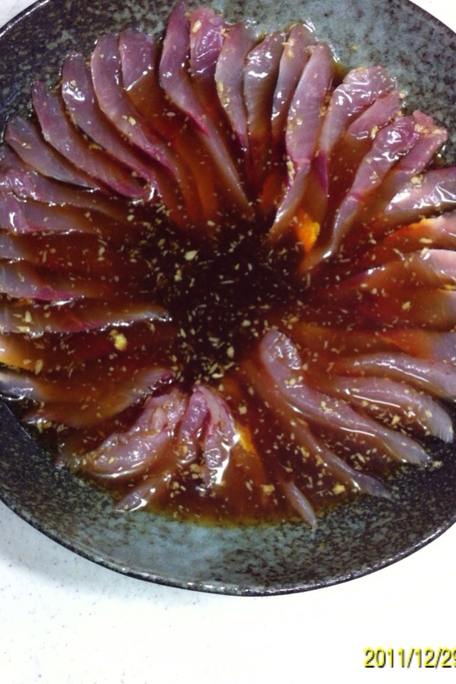 今回は、アジのネギポン酢です。 アジを3枚におろし、皮を剥がします。 刺身にします。 ポン酢と生ショウガを混ぜ合わせ、刺身に浸します。 刻みネギと炒りごまをてんこ盛り。 完成です。 文句なしに美味い!! にほんブログ村 PR |