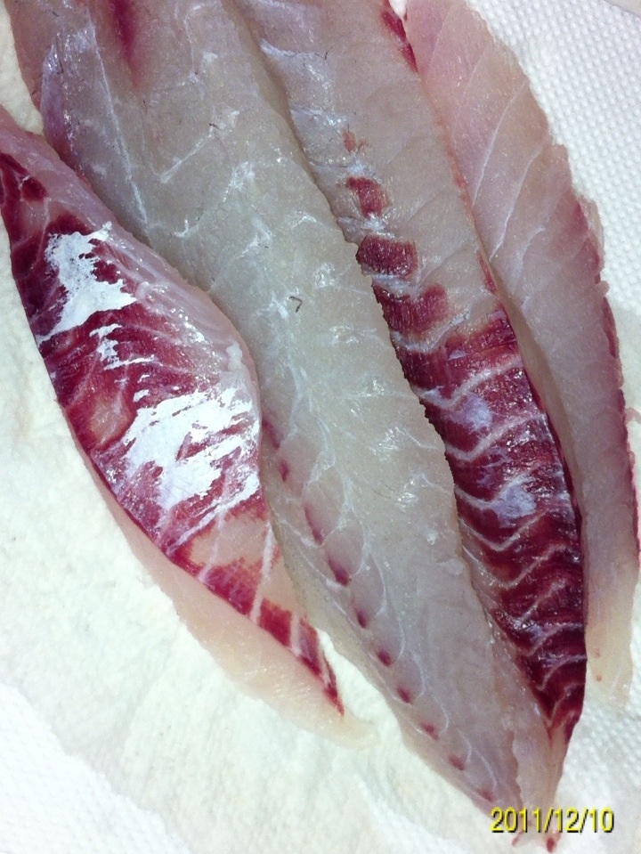 鮮度の高い黒鯛(チヌ)が手に入ったので調理していきます。 まずはチヌの刺身から ウロコとワタを取ります。 頭を落とします。 3枚おろしにします。 皮を剥がします。 身の中央部分には小骨があるので、骨を抜いてもいいのですが、僕はその部分だけ包丁で切り落とします。 お皿に大葉を並べます。 刺身を盛り付けていきます。 黒鯛のお造り完成。 次は黒鯛の刻みネギと柚子ポン酢あえです。 刺身を造った時に余った身を包丁で細かくします。なめろうのように粘りが出るまでしません。コリコリの食感を残しましょう。 チューブの生しょうが一絞りと刻みネギをのせます。 それをよく混ぜます。 柚子ポン酢をかけます。 ちなみに高知県馬路村の柚子ポン酢がオススメです。 完成です。 余った刺身で黒鯛雑炊も作ってみました。 アツアツで美味しかったですよ。 にほんブログ村 |