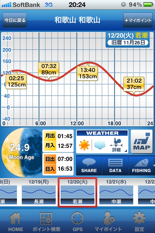 12/19 23:00頃 新和歌浦にライトゲームに行ってきました。