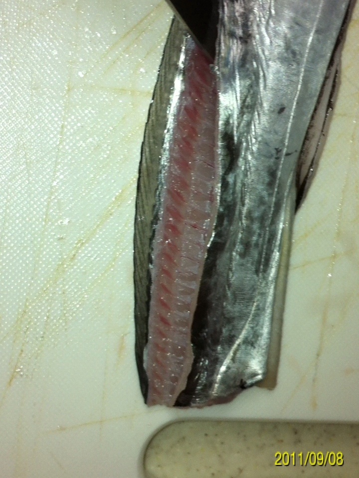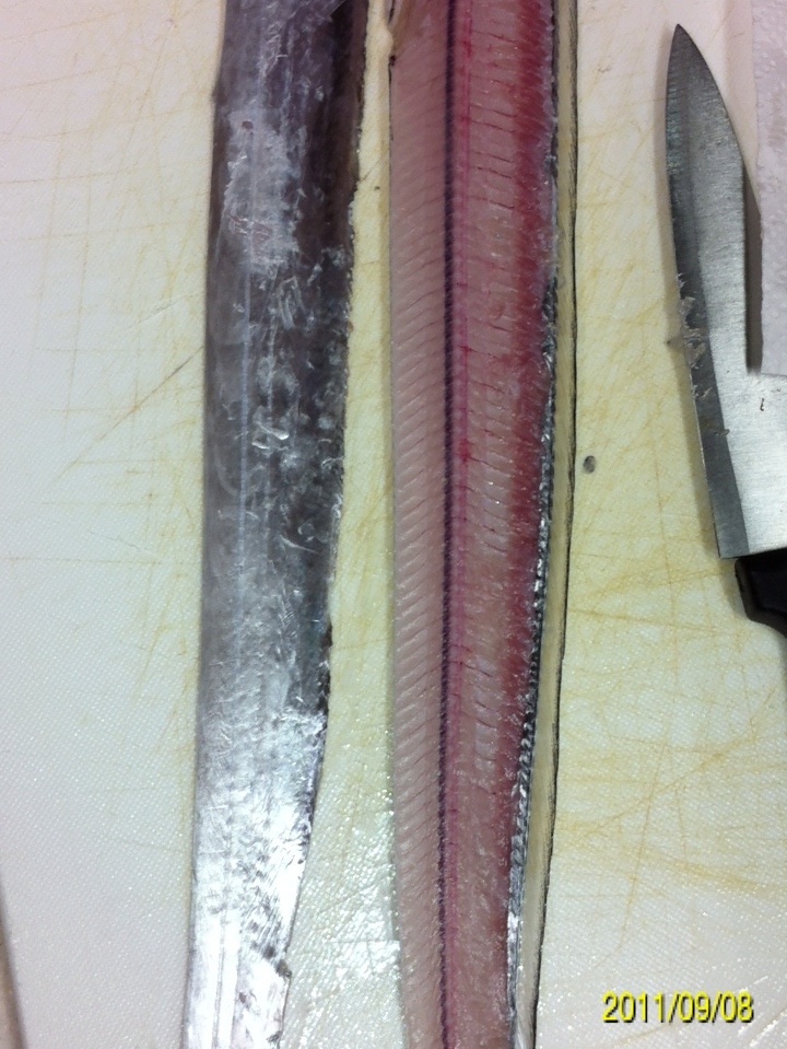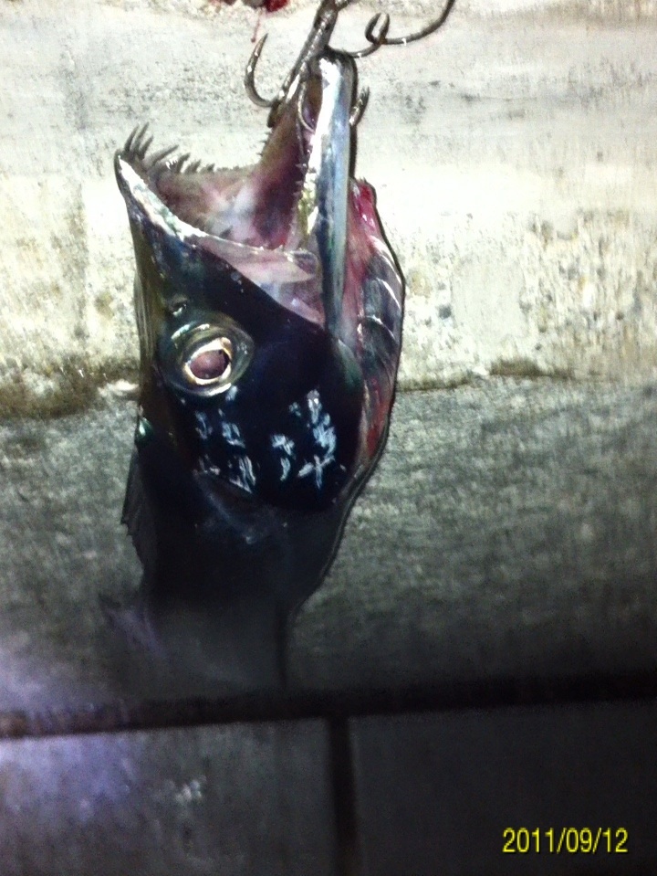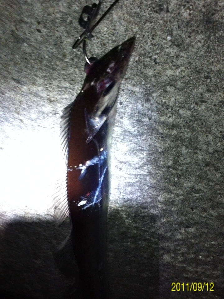 しかし、抜き上げに失敗!!痛恨のミス!!。目の前のタチウオが海に落下・・・。