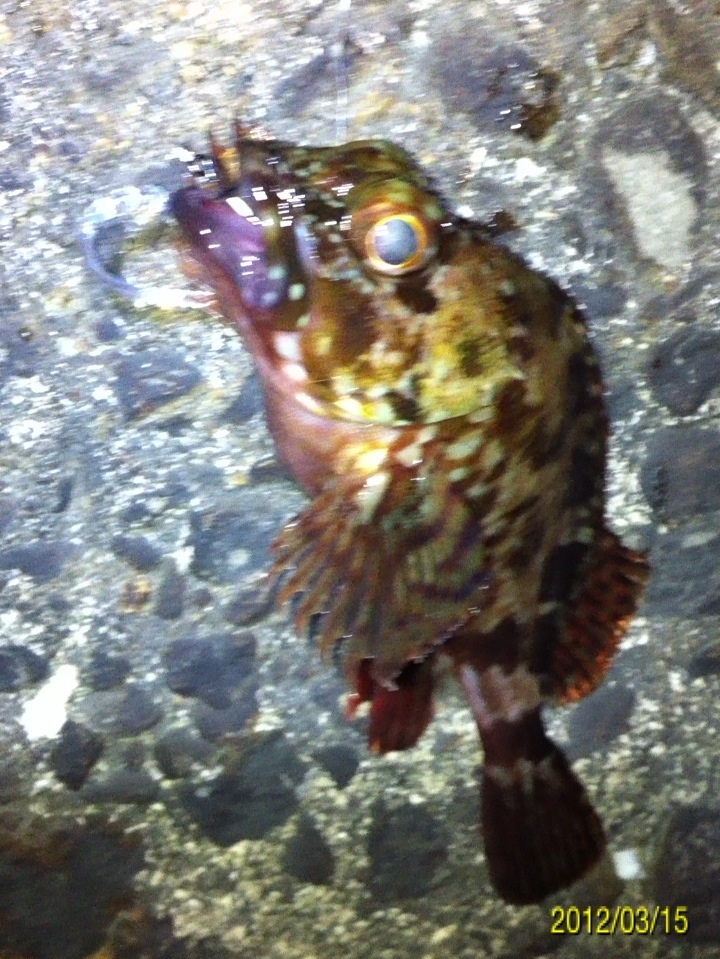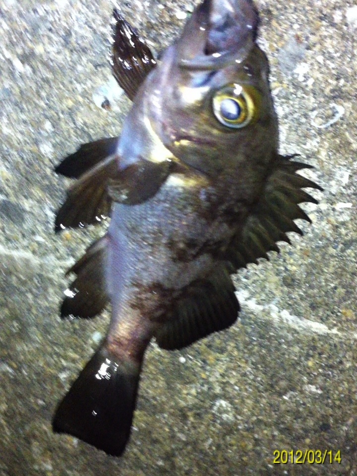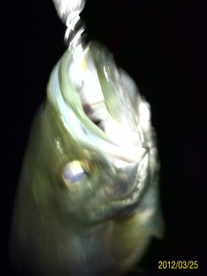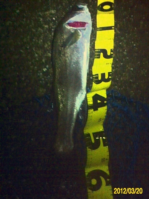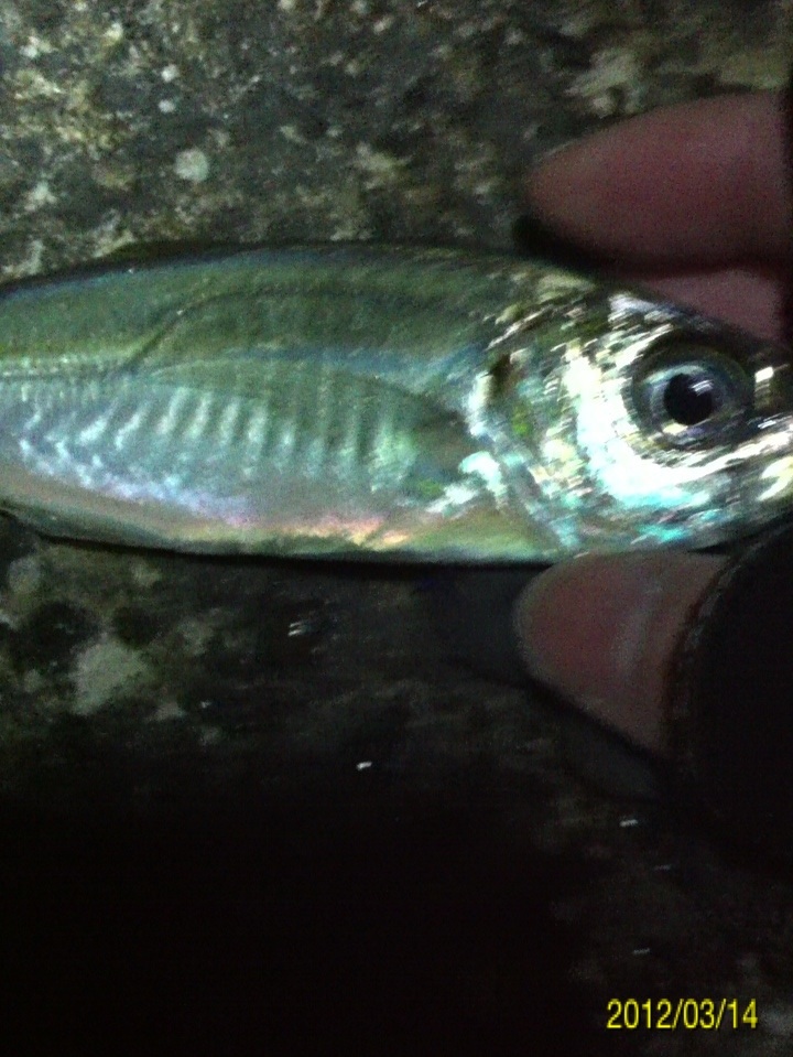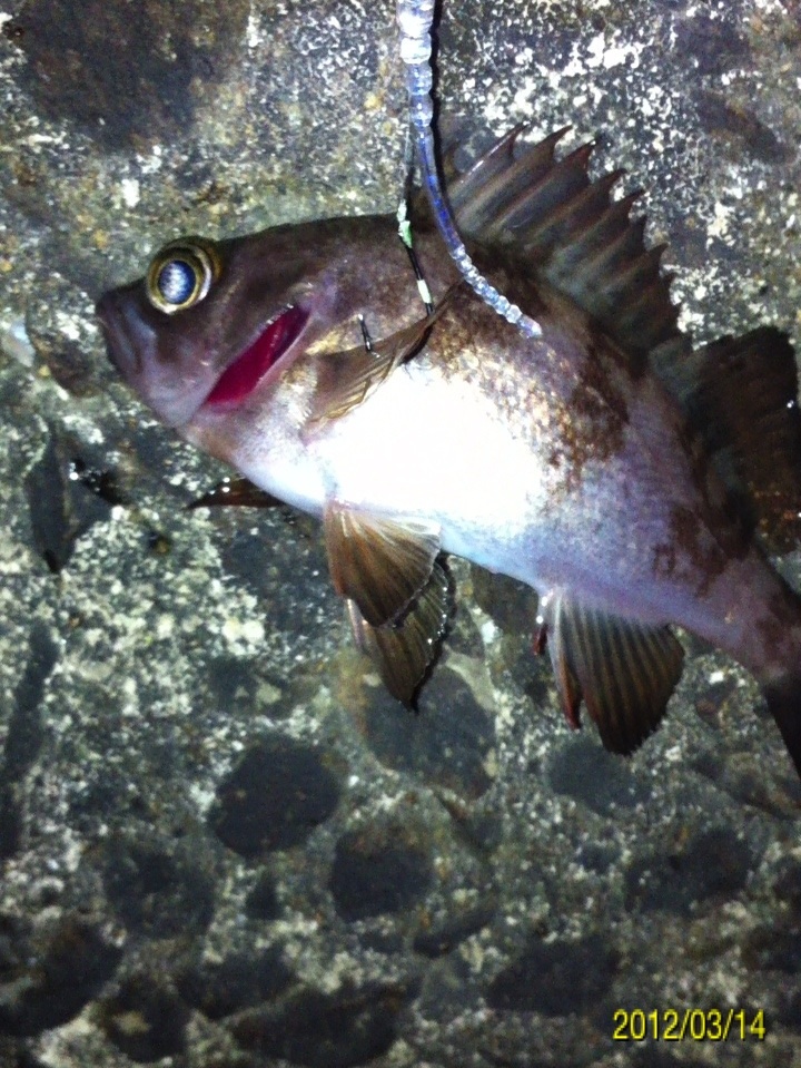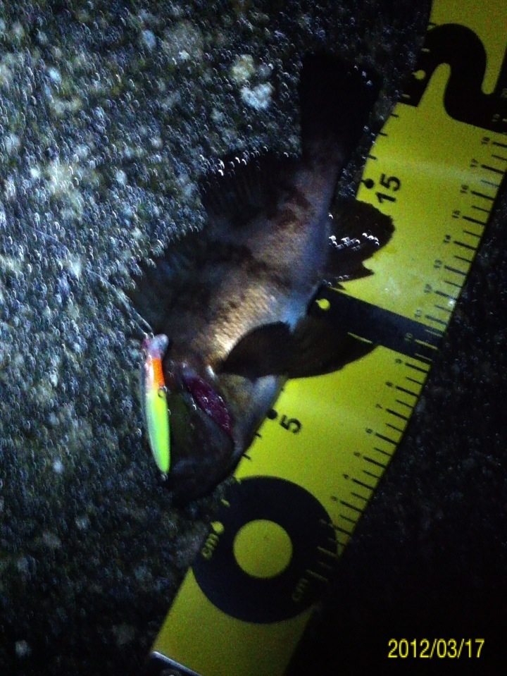 和歌山市内の堤防でアジングをして来ました。 当日のコンディションは 天気:曇り 気温:2~1度 風:西2~3m 潮:小潮 満潮からの下げ 海面はまるでプールのように穏やかな状態です。 ふと頭にこの言葉がよぎりました 「メバル凪・・・」 「メバルは凪を釣れ」って言葉もあるし・・・。 アジングをしに来たのですが、状況からみてメバルのほうが良さそうなので、まずは50ミリのフローティングミノーをキャストしてみます。 キャストしてリトリーブしているとスグにメバルらしき(?)アタリが!! 巻き上げて見るとそれは・・・ アジでした(^_^;) よく見るとスレ掛かりです。 たまたま引っかかったんでしょうね。 しかし次も・・・ *写真ぶれてます(^_^;) 今度はルアーをしっかり喰ってる!! ってことは・・・ アジもミノーで釣れる!! その後ベイトチェックをして見ると、お腹の中にはボラの稚魚が数匹入ってました。 これを参考に40ミリのジグミノーにチェンジ。 すると・・・ やはりアジはフィッシュイーターですね。 次はクリアカラーのフローティングミノーにチェンジ。 ゴツンッ!! 大きなアタリです!! これは・・・・!! やはりシーバスでした(^_^) 約40センチ 今夜はシーバスを持ち帰って料理してみます。 聞いた話ですが釣ってスグに〆てワタを出して皮のヌメリを綺麗に洗っておけば、臭みも無く美味しくいただけるそうです。 ちなみにシーバスもボラの稚魚を大量に喰ってました。 その後アジのアタリが少なくなってきました。 今度は波止際で何かがヒット!! アシストフックにスレ掛かりのメバルちゃんでした(^_^;) 小さいのでリリース 次も際でヒット!! 小さいな~ リリース 今度こそ!! 今夜は小さいメバルばかりが喰ってきます。 今度は今までと違うアタリが!! 小さいガシラちゃんでした(^_^;) ここでストップフィッシングです。 最終釣果 アジ×15匹 シーバス(マル)×1匹 メバル×3匹 ガシラ×1匹 ライトゲームで4目釣れました(^_^) アジは帰ってスグにお刺身にしました。 小骨を抜くのが面倒臭いですが、スゴく美味しいのでやってみる価値ありますよ(^-^)/ 「にほんブログ村」海釣り部門人気ランキングに参加中です。面白い!参考になった!他の方の釣りブログも見てみたい!と思われた方は下のアイコンをクリックして下さい(^-^)/ にほんブログ村 |