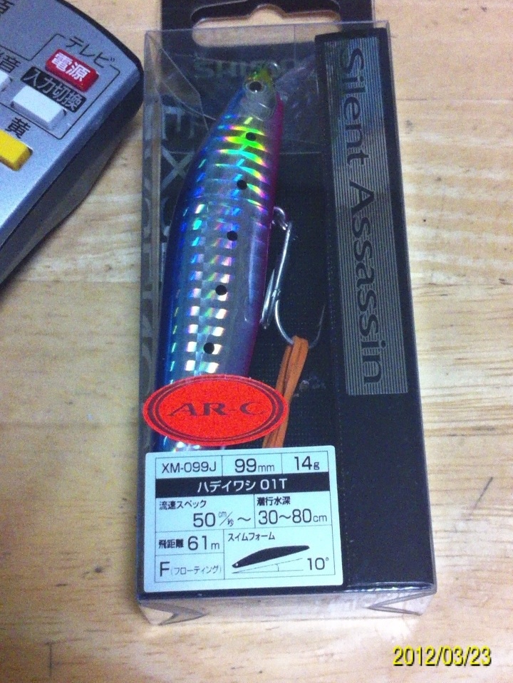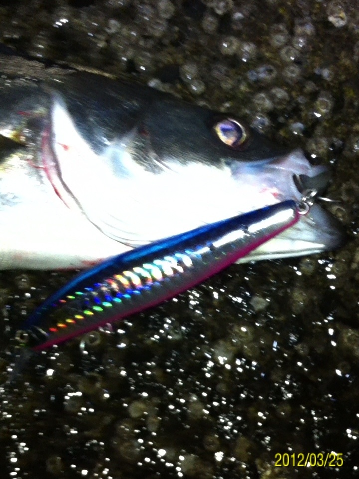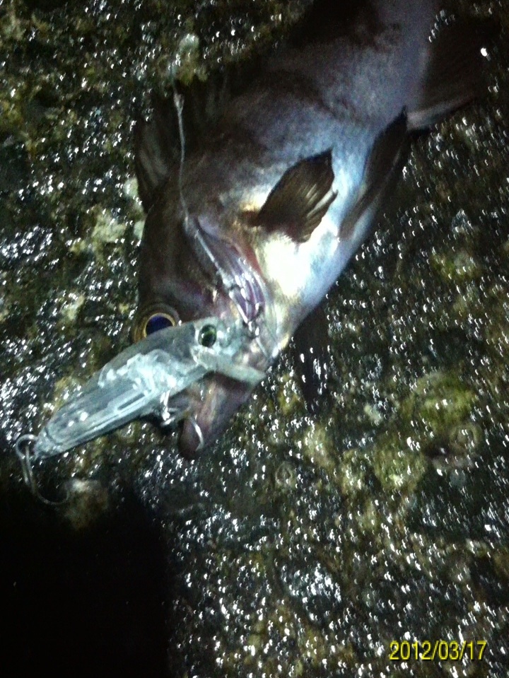 どうしても今夜(3/25)その実力を試したくて、強風とみぞれが降る中強行することにしました。 シーバスをやり始めて約1ヶ月がたちましたが、よく考えてみるとシーバス用のルアーを使って仕留めたことが無い・・・・ 個人的には釣れればそれで良いのですが、本格的にやってる人から見ると邪道に映ってしまうかも(?)と思ってしまい、シーバスルアーを購入することにしました。 そこで最近よく耳にする、シマノのサイレントアサシン99Fっていうルアーを購入。 メーカーの動画を何度も見直し、買う前に使い方を確認・・・ 投げて、巻くだけ・・・・だけ?(^_^;) 簡単すぎる・・・ しかもフローティングなので、根掛かりが大っ嫌いな僕にうってつけのルアーです!! そしてGETしたのがコレ。 いろんなカラーラインナップが有るのですが全て売り切れてて、このカラーのみが残っていました。 残りものには福・・・という言葉が有るので、それを信じて購入することにしました。 本当はボラコノシロというカラーが欲しかった・・・ しかしシーバスルアーって結構値段が高いな・・・ 今夜のブログタイトルの【サイレントナイト】の意味は天気ではなく、ルアーの名前からとったものです・・・天候はタイトルとは真逆でしたので、あしからず。 現場に到着 ちょうど満潮の時間です。 潮の下げ始めのタイミングまでポイント付近をウロウロ・・・ 坊主逃れのメバルでも釣っておこうと思い、いつもの小さいルアーをキャスト・・・・ ヒット!! いい引きや!! 良いサイズのメバル!!? あれ? 小さいシーバスが釣れちゃいました。 まあメバルじゃ無いけど、とりあえず坊主は逃れました(^_^;) 潮も下げ始めたので、本命ポイントに移動しました。 さあシーバスをサイレントアサシンで仕留めるぞ!! キャストして驚かされたこと・・・ スイム姿勢 立ち上がりの早さ 光の乱反射によるアピール力 そして一番驚いたのは、爆発的な飛距離です。いつも使ってるルアーの3倍は飛んでると思います。 釣れなくてもいい(うそです)・・・・キャストするだけでも気持ちいい爽快感が有ります。 初めて使うルアーに思考錯誤しながらキャストを約20分程繰り返していると・・・ 待望のあたりが!! 40センチUPのシーバスをサイレントアサシンでGET!! 今夜はサイレントナイトや~!! って一人つぶやいちゃいました(^_^;) が、ここからが試練でした。 シーバスのライズがほとんど無くなりました。 潮も緩んだ感じです。 どうやったら釣れるんやろ? タバコを一服しながら、座りこんで長考・・・・ さっき釣れた時は、やや早巻きで釣れた・・・その時は潮は動いていた・・・・今は?潮が緩んでる・・・・さっきの逆をやれば釣れる? ゆっくり巻き? 素人なりに色々考えた結果、スローリトリーブで勝負することにしました。 ゴツンッ!! キタ~!! 大アワセ~!! グイッ~!! のりました~!! 慎重にランディング。 コンディションの良い50センチUPです!! 時間が来たので、AM2:00にストップフィッシングにしました。 買いたてのシーバスルアーで釣れたので大満足です(^_^) 本日の釣果 シーバス×3本 「にほんブログ村」海釣り部門人気ランキングに参加中です。面白い!参考になった!他の方の釣りブログも見てみたい!と思われた方は下のアイコンをクリックして下さい(^-^)/ にほんブログ村 PR |