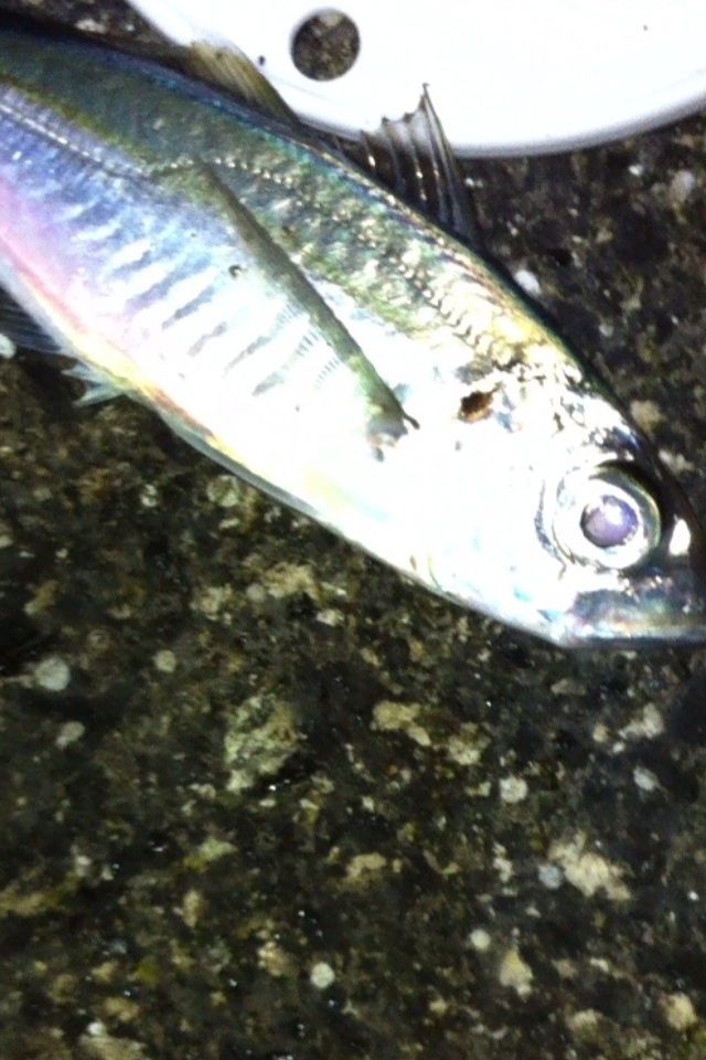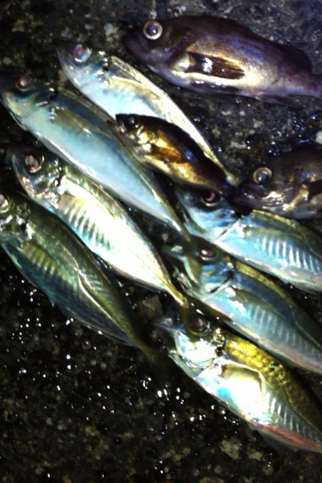 アジを狙う時は、今まではキャロをよく使っていたのですが、今回は超軽量のジグヘッドでチャレンジします。 今までキャロを使っていた理由としては、フックにオモリが付いていないので吸い込みが良く、針がかりし易いという理由がありました。 ただ、キャロに関してはラインにオモリが付くので、アタリが取りにくいのでは?と、思うようになりました。 ジグヘッドではアタリが直接的に伝わるので、フッキングしやすくなりますが、重たいジグヘッドを使うと沈む速度が速すぎて、アジがアタックできなくなる・・・・。 そこで、両者の良いところを全面に出せる超軽量ジグヘッドを思い付きました。 飛距離は出ませんので、近くに居なければメバル狙いにチェンジします(^_^;) それでは、スタートフィッシング!! 今回は時間が2時間程度しか無いので、アジの群れがいること祈りながらキャスト数投・・・・ クククククッ!! いや ピピピピピッ!! って感じかな? アジのアタリを擬音でどうお伝えすれば良いのかわかりませんが、とにかくアジのアタリです!! しかし!! 上顎にフッキングしていない感じです(^_^;) 案の定、抜き上げ時に落下(´Д` ) アジはエサに喰いついたらスグに反転するため、合わせが遅いと上顎にフッキングせず口の横に針がかかりしバラしやすくなります。 アタリがあった瞬間に合わせを入れれば上顎にフッキングさせることができます。 わかっているのですが、慣れるまではチョット難しいですよね(^_^;) ククククッ!! きました!! 手首で合わせ!! のった~!! 念のため慎重に巻き上げて・・・ ゲットです!! 確かに、いいサイズ?の小アジです!! 続けざまにヒット!! アジが元気過ぎて、スマートフォンのカメラのシャッタースピードでは画像がブレる・・・・ その後・・・ 足元にて メバルちゃんです(^_^) 今回のターゲットはアジなので、後ほどメバルはオールリリースいたします(^_^) またまた、足元まで巻いて来たときにヒット!! でも、際ではメバルの可能性が・・・ 予想通りメバルでした。 その後、10分に1ヒットの割合でアジを追加しましたが、カメラには写ってませんでした(^_^;) シャッタースピードの有るいいカメラが欲しい・・・ メバルはそんなに暴れないので、写しやすいです(^_^) さらに追加 最終釣果です ベイトチェックしてみました。 シラス?や魚の稚魚が入っていました。エビ類は一切入ってませんでした。 次回の参考にします(^_^) 美味しいアジを短時間で食べる分だけゲットできました(^_^) それにしても美味しそうです。 今回は一夜干しにして食べます(^-^)/ 「にほんブログ村」海釣り部門人気ランキングに参加中です。面白い!参考になった!他の方の釣りブログも見てみたい!と思われた方は下のアイコンをクリックして下さい(^-^)/ にほんブログ村 |