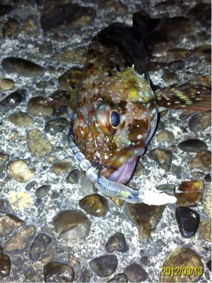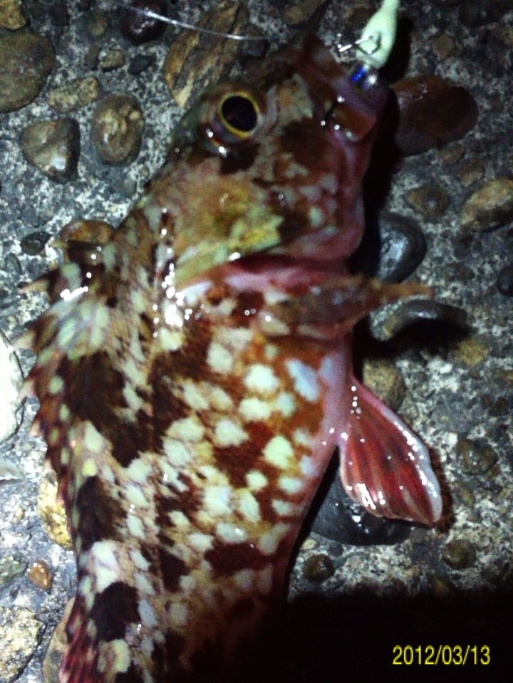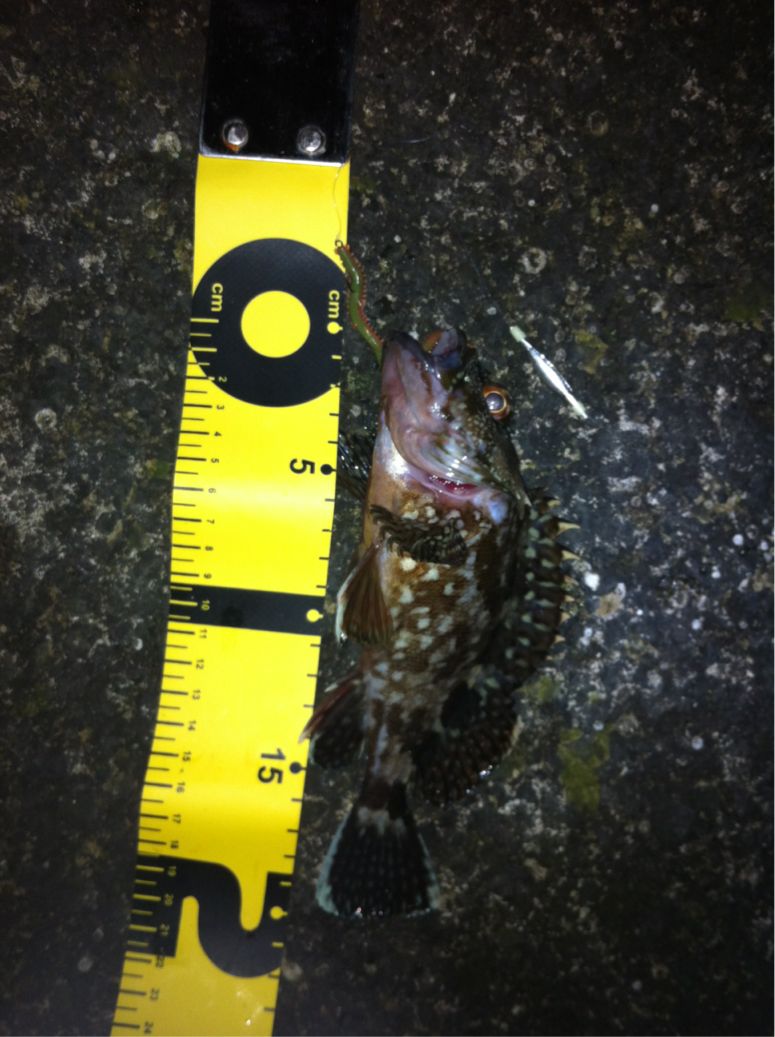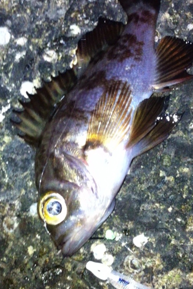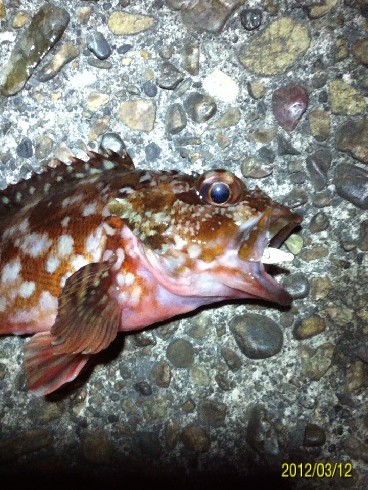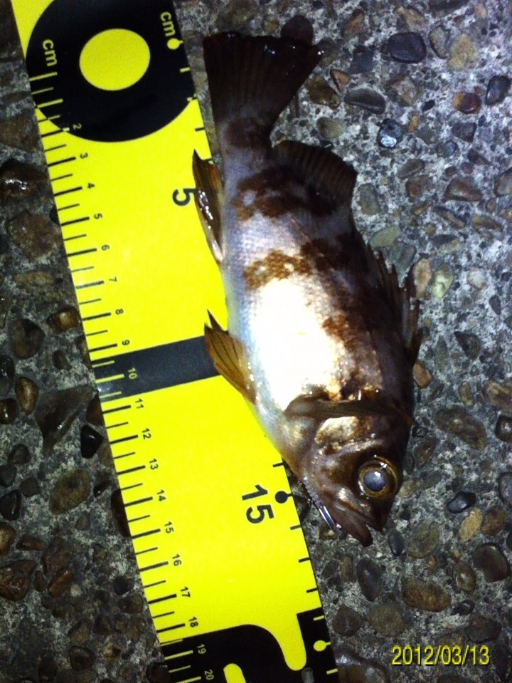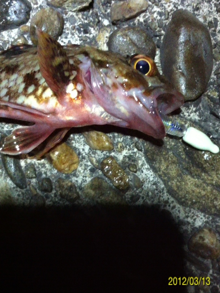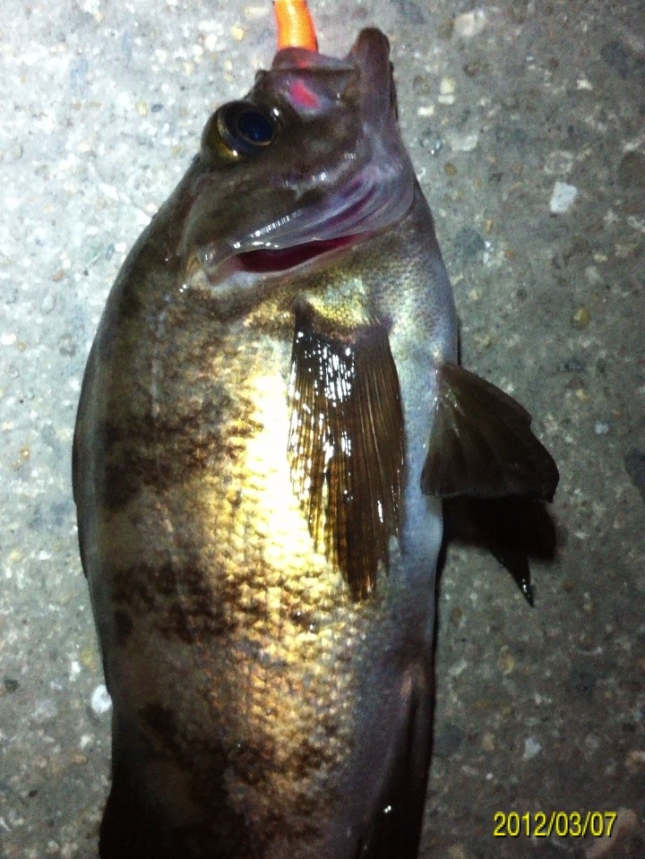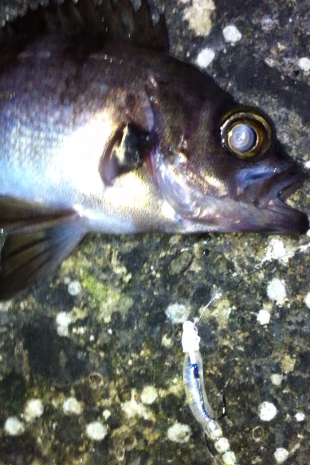和歌山市内のマイポイントに釣りに行ってきました。 二日間パラパラと降り続いた雨、どんな影響があるのか? 先日はアジがいい感じに釣れ、メバルの活性も悪くは無かったのですが・・・ 数日前までの釣行ではアジやメバルの胃袋の中に、ボラの稚魚やシラス?のような魚が沢山入っていました。 アジのベイトチェック画像 メバルのベイトチェック画像 今回一番やりたい釣りは、アジングでのボラ稚魚パターンなのですが、イマイチのようで有れば、メバルやシーバス狙いにチェンジしたいと考えています。 気になる当日のコンディション 天気:晴れ 気温:11~12度 風:西の風5~6m 潮:大潮の底からの上げパターン 気温も上がり、潮も上げ潮、適度な風 申し分なさそう・・・かな? 今朝電車の中から紀ノ川の状態を確認・・・ うーん微妙な濁り・・・ 今回は何と、ロッド3本持参です。 ジグヘッド用、ハードルアー用、フロートリグ用です。 持ち運ぶのは面倒ですが、ポイントに着いたら足元にセットして置いておけば、使いたい時にスグに使える。 一本のロッドでもいいのですが、リグりなおすのが面倒だし、時間のロスもあり効率も悪くなりますもんね。 この重装備!! もはやライトゲームでは無い??? とにかくスタートフィッシングです(^_^;) まずはジグヘッドリグからスタート 0.4gのジグヘッドに2.3インチのクリアカラーワームをセットして、表層をデッドスローでただ巻き。 何回キャストしても、かすりもしません(^_^;) フローティングミノーにチェンジです。 が、こちらも全くアタリ無し・・・ 約2時間経過 坊主で帰るのは嫌なので、とりあえずガシラを一匹だけでも釣ろうと思い、得意のキャロに変更。 そして、最近僕の中では禁じ手にしていた【ガルプ サンドワーム】登場!! キャストしてキャロをボトムまで落として、リフト&フォール すると・・・・ ゴツッ!! きました(^_^) 困った時はガシラ様ですね(^_^;) ただし、【ガルプ】(エサ?)で釣りました(^_^;) 釣るのはメバルやアジよりも楽だし食べても美味しいし、いつも助けていただいております・・・ 坊主は逃れたので、少し場所を移動してメバルを狙います。 移動してスグにメバルのアタリがきました!! いつもはクリアカラーのワームを使うのですが、今夜は雨の影響で水が濁っているので少し派手めのカラーにするとスグに釣れました。 しかし後が続かない・・・ 試行錯誤の末、クリアカラーのミノーにチェンジすると・・・ きました!! でもメバルの引きじゃない!! 軽かったので抜き上げてみると・・・ ホンマに小さいシーバスちゃんでした(^_^;) その後もチーバスのアタックはあるものの、針にのらないアタリばかりが続いたので、これでストップフィッシングとしました。 最終釣果 ガシラ×1 メバル×1(リリース) シーバス×1(リリース) 雨の後のライトゲームはチョット厳しかったです(^_^;) 次回リベンジ!! 「にほんブログ村」海釣り部門人気ランキングに参加中です。面白い!参考になった!他の方の釣りブログも見てみたい!と思われた方は下のアイコンをクリックして下さい(^-^)/ にほんブログ村 |