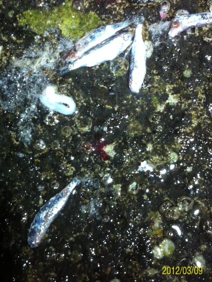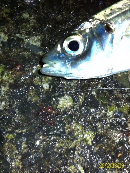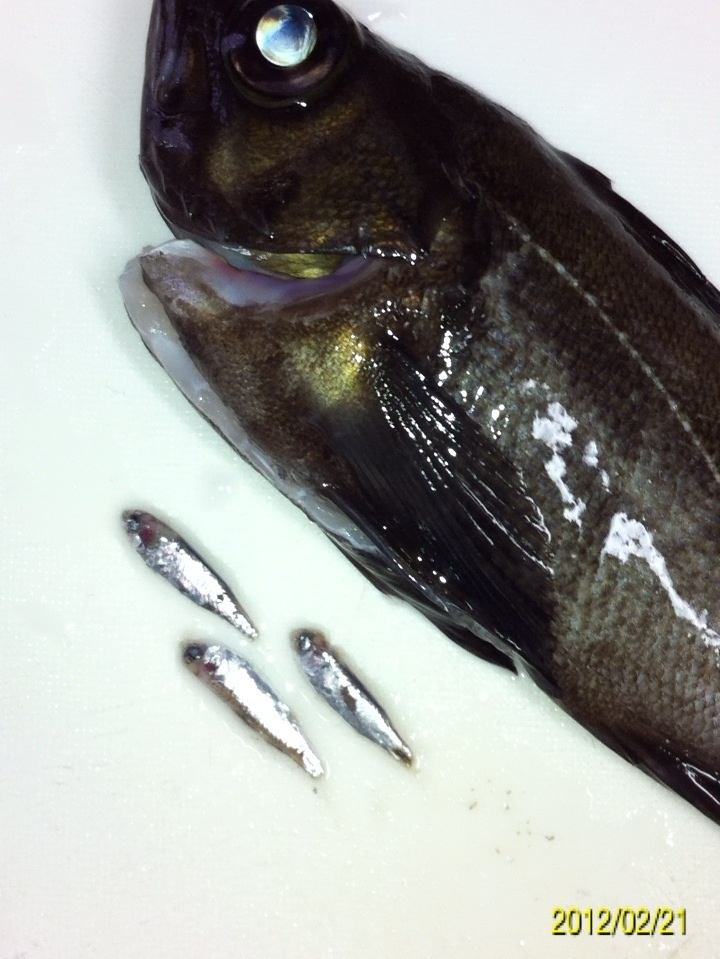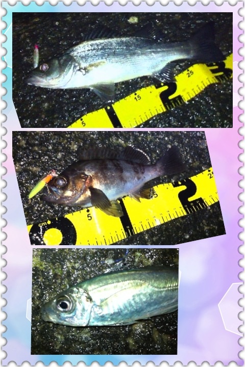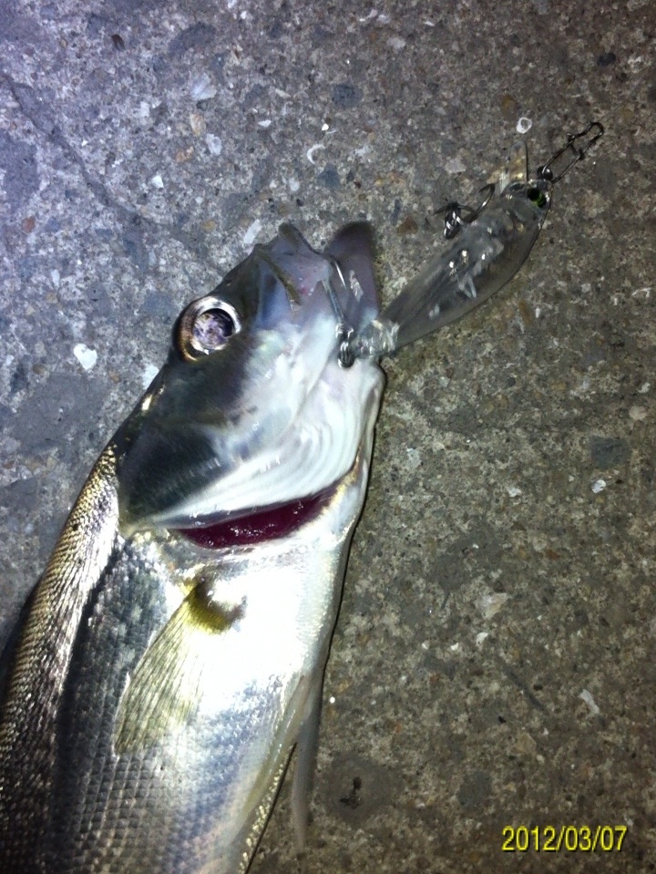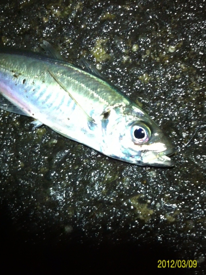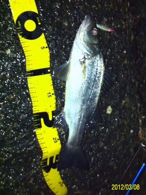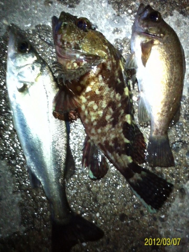 マイポイントへ釣りに行ってきました。 メインターゲットは ①アジ ②メバル ③シーバス ☆ガシラ(家族の要望)。 前回作った酒蒸しが好評でもう一回食べたいとリクエストを受けました。 前回の釣行では、前日まで降った雨の影響で海水が水潮状態だったことと、魚の視界を遮る濁りが入っていて、非常に苦戦しました。 ちなみに今朝の紀ノ川の画像 左側が本日で右側が前回です。 光の加減等もあり、よくわかりません。 あまり参考になりませんね(^_^;) 当日のコンディション 天気:曇り後雨 気温:9度前後 風:北西2~3m 潮:大潮の下げ~深夜から上げ マイポイントの駐車スペースに到着すると・・・そこには見覚えのある車が2台止まっている(^_^;) 友人のY氏とT氏の車です。 よく釣るかたが二人も先に、ポイントに入っている(^_^;) 今夜は苦戦必至かな? 合流して今までの釣果を見せてもらいました。 いいサイズのガシラが既に10匹以上バッカンで泳いでいました(^_^;) もうボトムゾーンは制圧された感が有ったので、ボトム(ガシラ)は諦めて表層を狙うことに決定。 メバルもシーバスも釣りたいので、何故か僕と相性の良いミノー(ハードコアミノー50フローティングタイプのグロー)で勝負します。 キャストしてただ巻きしたり、ナチュラルドリフトさせたり、トゥイッチを入れたり、ストップ&ゴーで誘いをかけたり・・・ すると、トゥイッチで喰ってきました!! しかし、いつもより強い引きです!! めちゃくちゃ暴れてる・・・大きいのか? しかしランディングしてみると、そうでもないサイズでした。 ちゃんと測ったら35センチでした。 先日まで釣ったシーバスと何かが違います。 色は銀色、尾ビレは切れ目が無く真っ直ぐで、顔が少し小さい感じがします。 そして小さい割にパワフルでした。 念のためストマックチェックしてみました。 3センチ位迄の魚の稚魚が大量、そしてシラス?数匹が出てきました。 ベイトは甲殻類や虫では無く魚です。 この情報から、タックルはミノーで間違いないと判断。 すると・・・・ コッン!! ググッ!グググ~!! またまたヒット~!! メバルでした(^_^) その後、しばらく沈黙が続き・・・ 友人T氏がアジを仕留めました!! オッ!!やっとアジが回ってきたようです!! スグにジグヘッドリグに変更してアジング開始。 1gのジグヘッドに2.3インチのクリアワームをセット。 キャストして着水後、約5~6秒カウントダウン。 そしてただ巻き・・・・ ピピッ!! ピピピピピッ!! 手首のスナップだけで、縦に合わせを入れると・・・・ のりました!! いいアジです。 その後も同じパターンでゲット。 食欲旺盛です!! ジグヘッド丸呑み(^_^;) 合わせが遅いな・・・ 引き続きヒット!! これもジグヘッド丸呑みです。 早目に合わせても同じ結果でした。 その後雨が降り出し、しばらくやりましたが沈黙が続き、モチベーションの維持が難しくなってきたのでストップフィッシングとしました。 最終釣果 シーバス×1 メバル×1 アジ×3でした(^-^)/ 「にほんブログ村」海釣り部門人気ランキングに参加中です。面白い!参考になった!他の方の釣りブログも見てみたい!と思われた方は下のアイコンをクリックして下さい(^-^)/ にほんブログ村 |