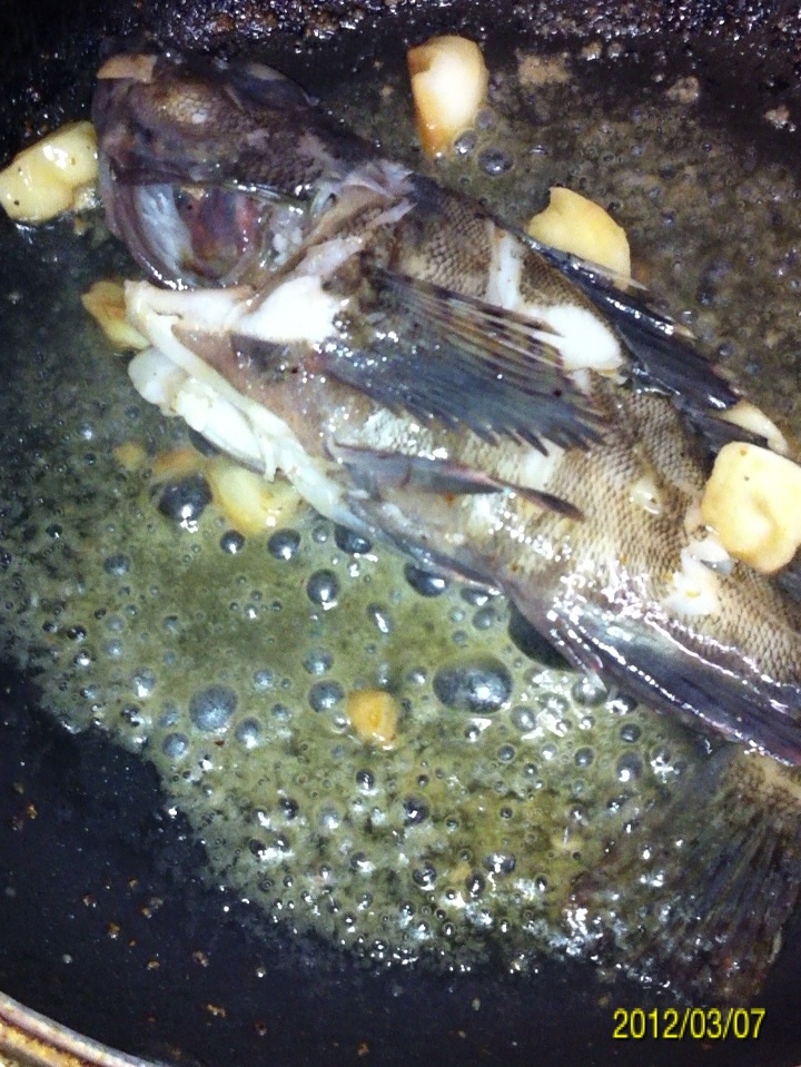 今回は酒蒸しにしたいと思います。 まずは魚をさばいて綺麗に洗い流し、塩をします。 フライパンにオリーブオイルとニンニクのスライス、一味唐辛子を入れて火を入れます。 ニンニクの香りが出始めたら、ガシラを入れて両面焼きます。 後で蒸し焼きにするので、適当で大丈夫です。 両面焼いたらお酒100ccをフライパンに入れて、フタをして蒸し焼きにします。 水分がとんで、こんな感じになればオッケーです。 お皿に盛り付けて完成 ガーリックの香りと唐辛子のピリ辛感が食欲をそそります(^_^) 「にほんブログ村」海釣り部門人気ランキングに参加中です。面白い!参考になった!他の方の釣りブログも見てみたい!と思われた方は下のアイコンをクリックして下さい(^-^)/ にほんブログ村 |